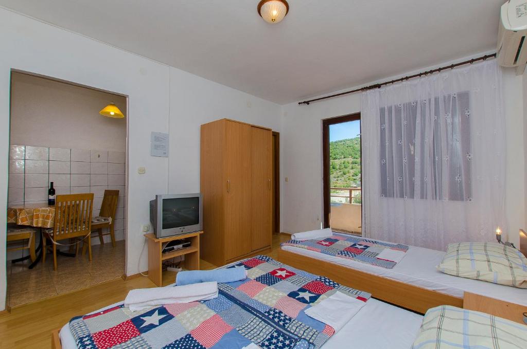 Studio apartman od cca 20m2 sa balkonom koji gleda bočno na objekt.
