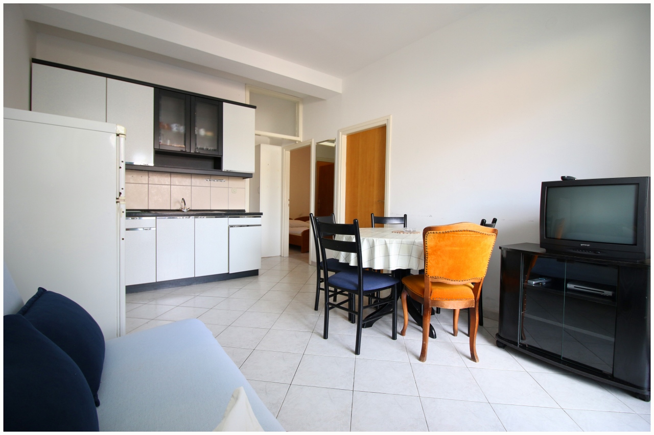 Appartamento al piano terra di circa 60 mq con balcone vista mare e giardino.