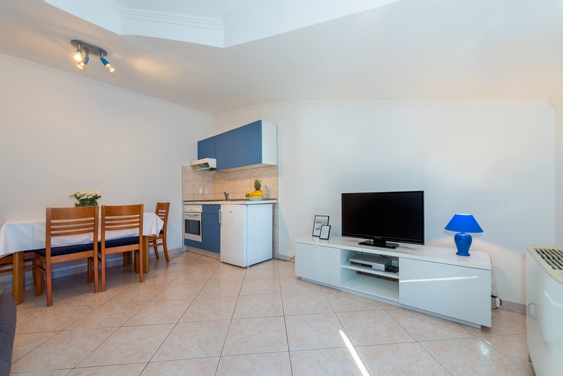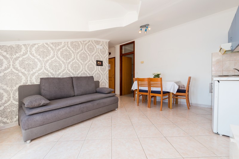 Appartamento 14 del tipo 2 + 2 si trova al terzo piano ed è composto da una camera da letto, soggiorno con divano letto per due persone (160x200), cucina, bagno e balcone con vista sul mare. La cucina è attrezzata con utensili da cucina e stoviglie.