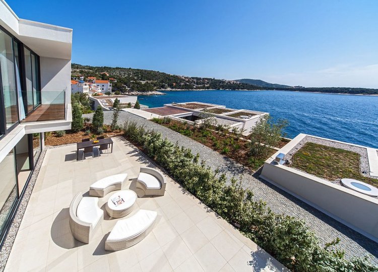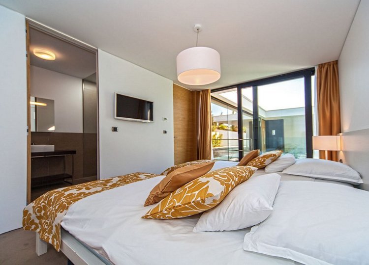 Primo piano: 1 camera matrimoniale (30 m2) con letto matrimoniale (2x90x200 cm), divano, TV SAT / LCD, bagno privato, cabina armadio, balcone (6 m2, splendida vista sul mare); 1 camera con un letto matrimoniale (2x90x200 cm), TV SAT / LCD, bagno privato, si apre su un balcone (6 m2, splendida vista sul mare); TV SAT / LCD, bagno privato, balcone alla francese. Parcheggio coperto nella villa per due auto.