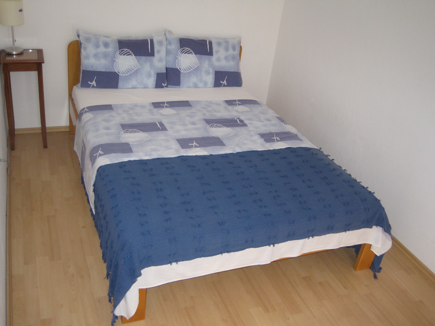 ok. 400 m od morza i plaży i 400 m od centrum, balkon z małym widokiem na morze, kuchnia, 2 oddzielne sypialnie dla 2 osób każda, dodatkowe łóżko dla jednej osoby, WC-wanna, klimatyzacja, TV, Wi-Fi, pierwsze piętro, parking