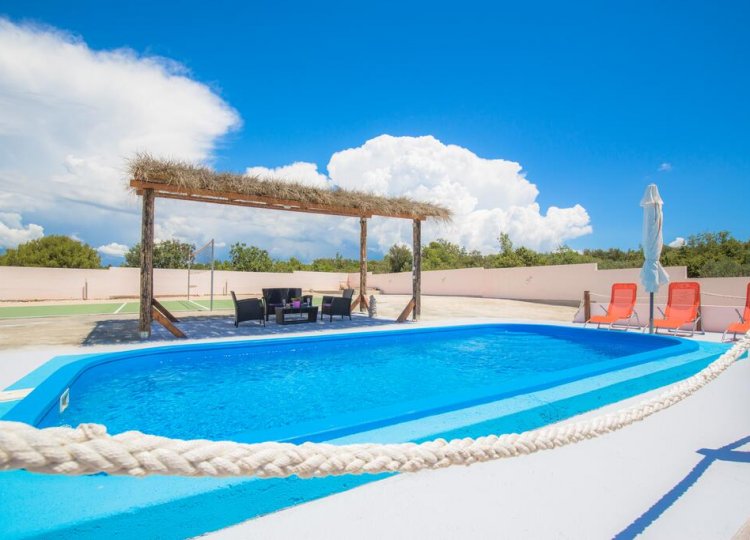 Obiekt dysponuje odkrytym basenem, minibarem i boiskiem do siatkówki, a także kilkoma łazienkami.