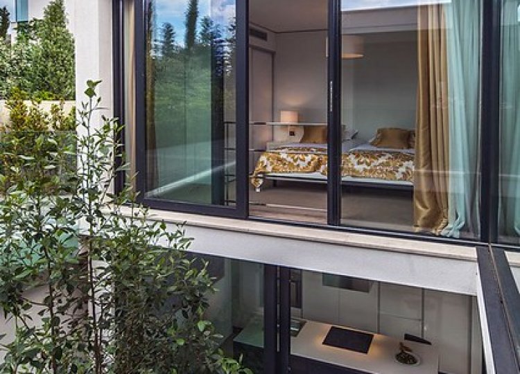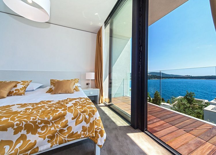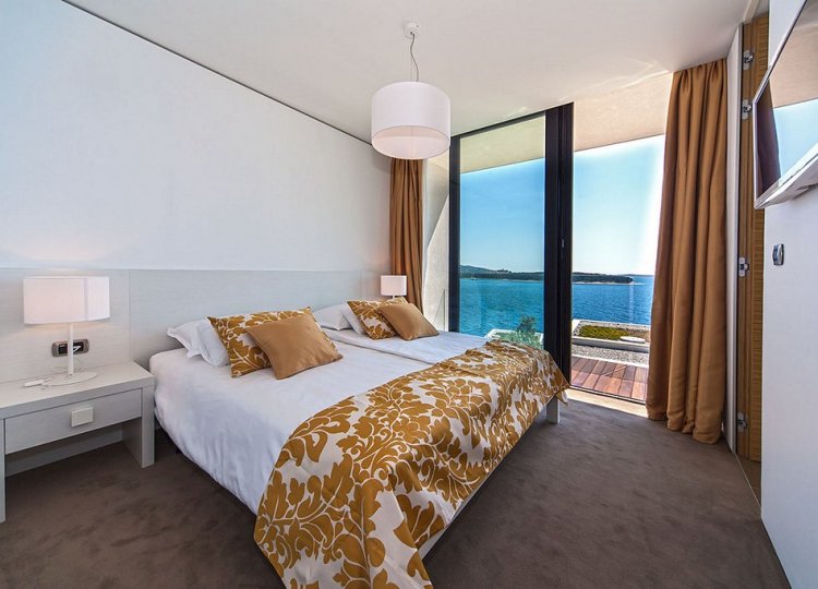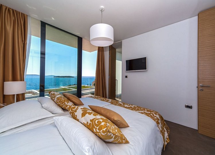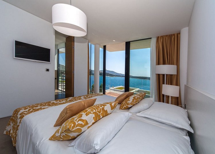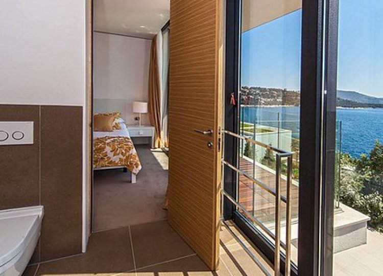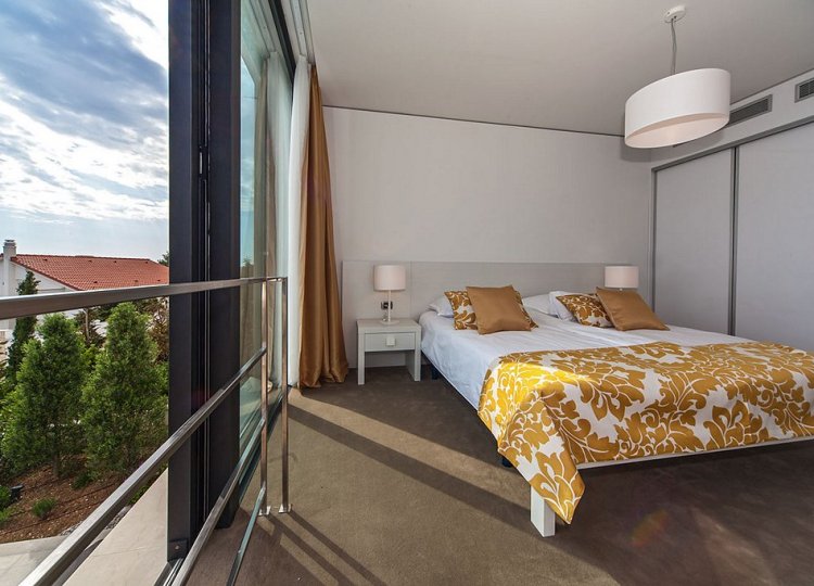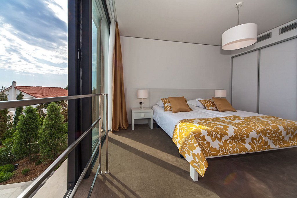 Pierwsze piętro: 3 sypialnie z podwójnym łóżkiem (2x90x200 cm), TV SAT / LCD, łazienką, wyjściem na balkon (4 m2, piękne widoki na morze; 1 sypialnia z 2 łóżkami (2x90x200 cm), TV SAT / LCD, łazienką , francuski balkon. Zadaszony parking w willi na dwa samochody.