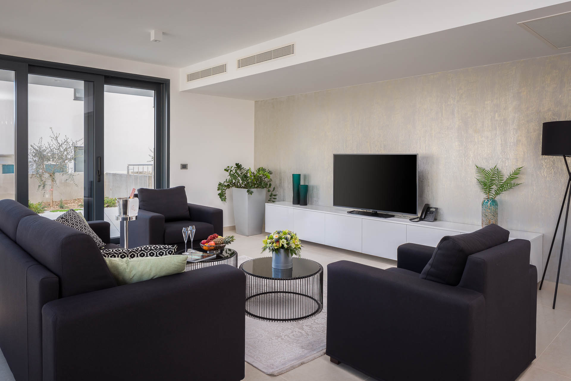 Na 185 m2 znajduje się parter i dwa piętra. Parter willi zaprojektowano jako otwartą przestrzeń między budynkami